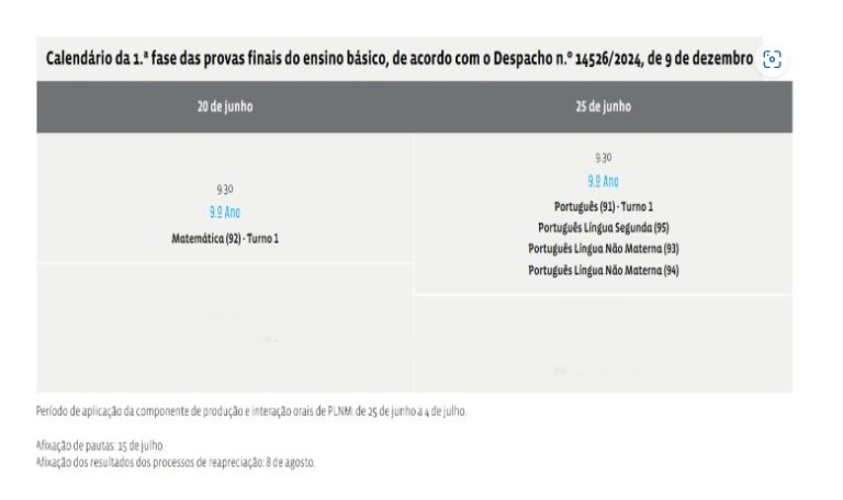 A organização dos exames finais é essencial para garantir que alunos, encarregados de educação e docentes têm uma visão clara de todas as datas importantes. Para facilitar o acesso à informação, reunimos numa única página os calendários completos da 1.ª e 2.ª fases das provas finais do ensino básico, apresentados de forma visual e em alta resolução.