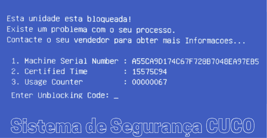 No computador bloqueado, introduza o código gerado no campo indicado: Enter Unblocking Code / Digite o código de desbloqueio.